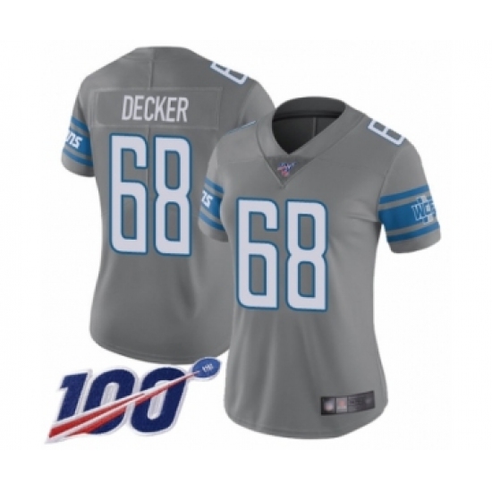 >Women's Detroit Lions #68 Taylor Decker Limited Steel Rush Vapor Untouchable 100th Season Football Jersey