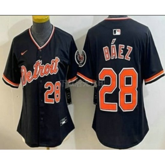 Women's Detroit Tigers #28 Javier Baez 2024 Navy City Connect Cool Base Limited Stitched Jersey