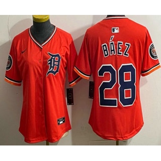 >Women's Detroit Tigers #28 Javier Baez Orange Limited Jersey