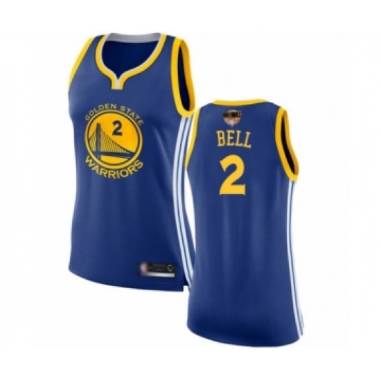 >Women's Golden State Warriors #2 Jordan Bell Swingman Royal Blue 2019 Basketball Finals Bound Basketball Jersey - Icon Edition