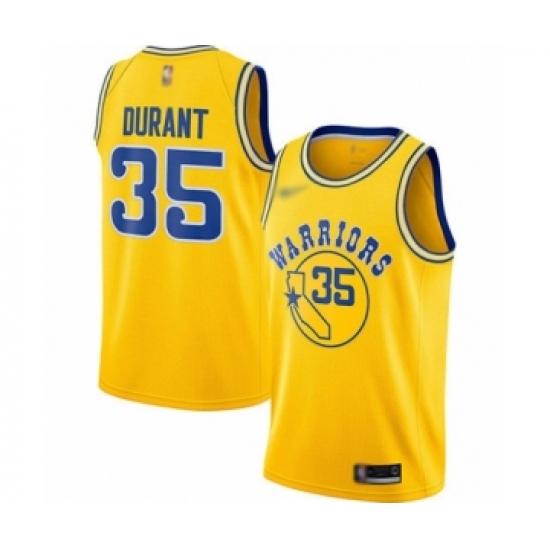 Women's Golden State Warriors #35 Kevin Durant Swingman Gold Hardwood Classics Basketball Jersey