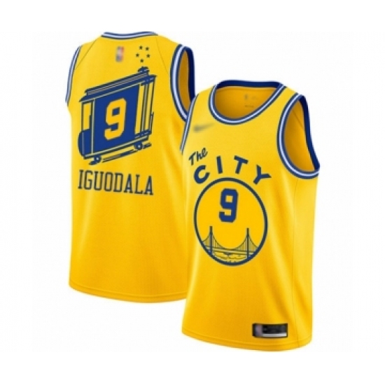 Men's Golden State Warriors #9 Andre Iguodala Authentic Gold Hardwood Classics Basketball Jersey - The City Classic Edition