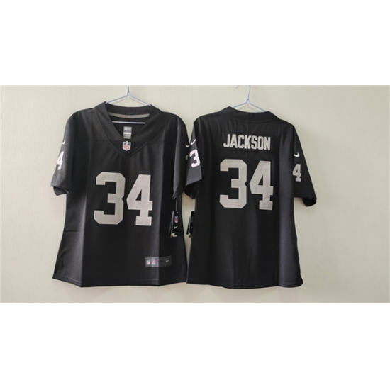 >Women's Las Vegas Raiders #34 Bo Jackson Black Vapor Stitched Jersey(Run Small)