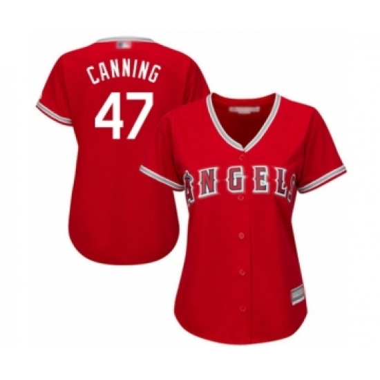 >Women's Los Angeles Angels of Anaheim #47 Griffin Canning Authentic Red Alternate Cool Base Baseball Player Jersey