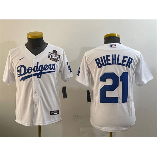 Women's Los Angeles Dodgers #21 Walker Buehler White 2024 World Series Cool Base Stitched Baseball Jersey(Run Small)