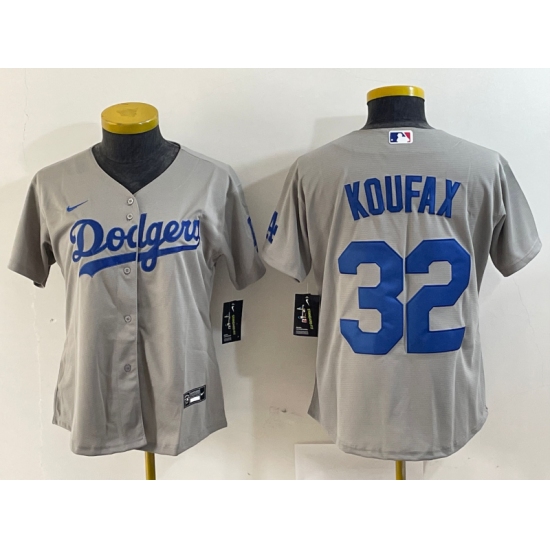 Women's Los Angeles Dodgers #32 Sandy Koufax Grey Cool Base Stitched Jersey