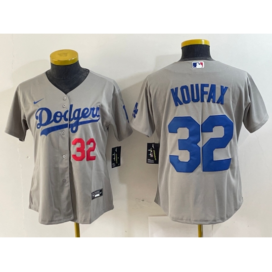 Women's Los Angeles Dodgers #32 Sandy Koufax Grey Cool Base Stitched Jersey