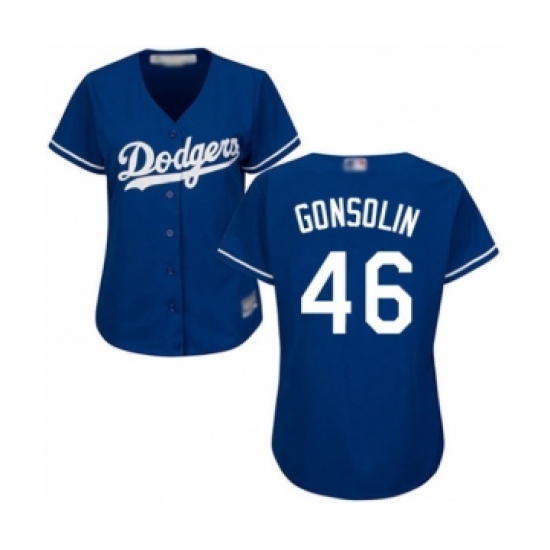 >Women's Los Angeles Dodgers #46 Tony Gonsolin Authentic Royal Blue Alternate Cool Base Baseball Player Jersey