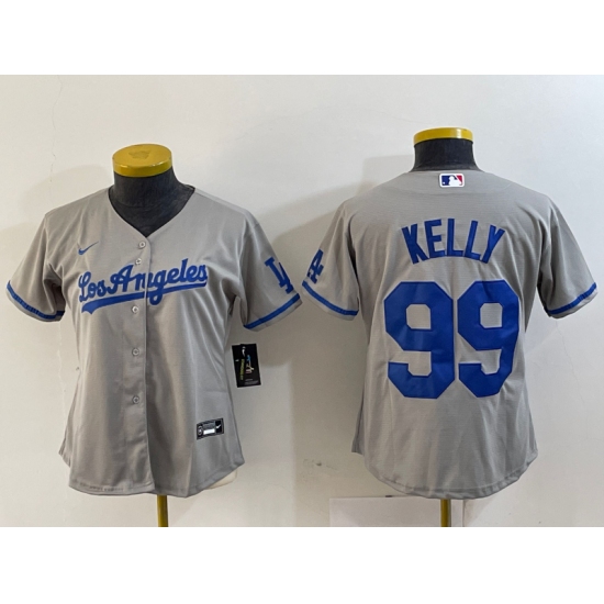 >Women's Los Angeles Dodgers #99 Joe Kelly Grey With Los Stitched Cool Base Nike Jersey