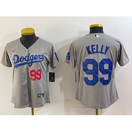 Women's Los Angeles Dodgers #99 Joe Kelly Number Grey Stitched Cool Base Nike Jerseys