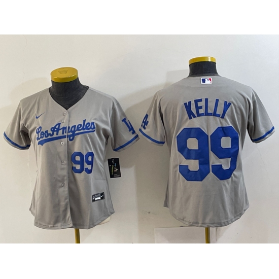 >Women's Los Angeles Dodgers #99 Joe Kelly Number Grey With Los Stitched Cool Base Nike Jersey