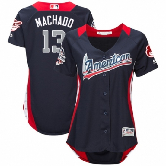 >Women's Majestic Baltimore Orioles #13 Manny Machado Game Navy Blue American League 2018 MLB All-Star MLB Jersey