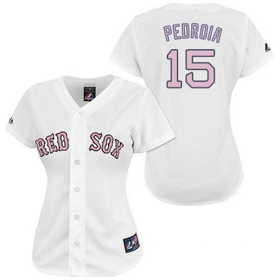 Home>MLB>Boston Red Sox>Dustin Pedroia>Women's Majestic Boston Red Sox #15 Dustin Pedroia Authentic White/Pink No. MLB Jersey