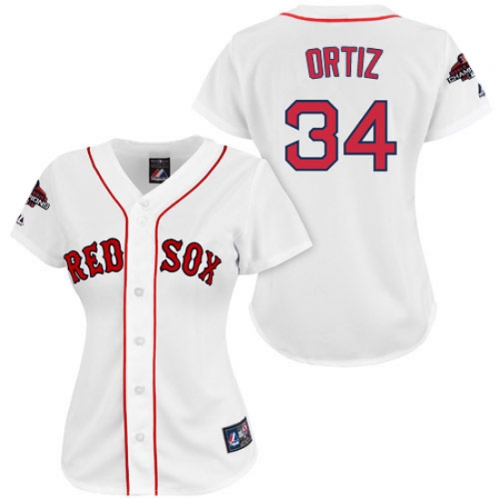 Women's Majestic Boston Red Sox #34 David Ortiz Authentic White 2018 World Series Champions MLB Jersey