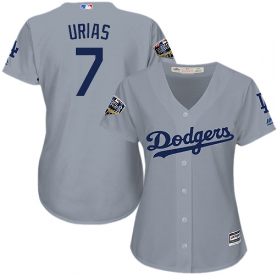 >Women's Majestic Los Angeles Dodgers #7 Julio Urias Authentic Grey Road Cool Base 2018 World Series MLB Jersey