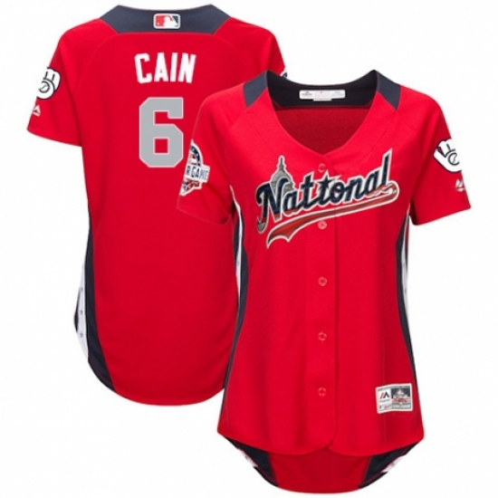 >Women's Majestic Milwaukee Brewers #6 Lorenzo Cain Game Red National League 2018 MLB All-Star MLB Jersey