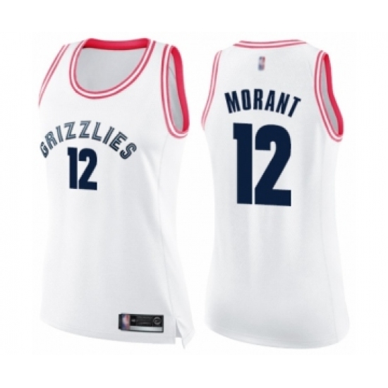 Women's Memphis Grizzlies #12 Ja Morant Swingman White Pink Fashion Basketball Jersey