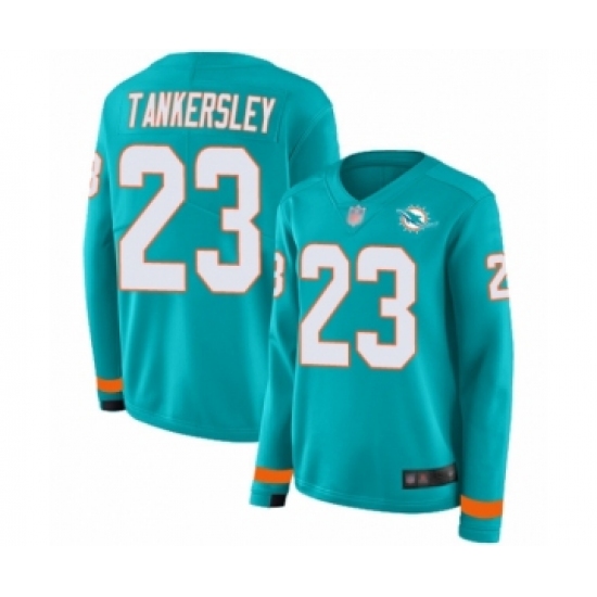 >Women's Miami Dolphins #23 Cordrea Tankersley Limited Aqua Therma Long Sleeve Football Jersey