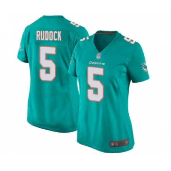 >Women's Miami Dolphins #5 Jake Rudock Game Aqua Green Team Color Football Jersey