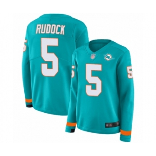 >Women's Miami Dolphins #5 Jake Rudock Limited Aqua Therma Long Sleeve Football Jersey