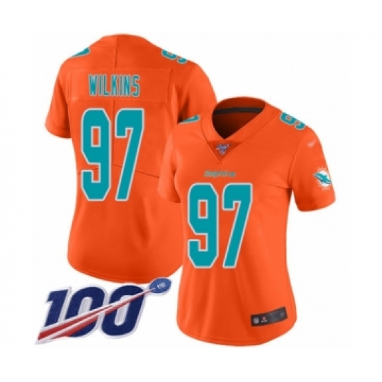 Women's Miami Dolphins #97 Christian Wilkins Limited Orange Inverted Legend 100th Season Football Jersey