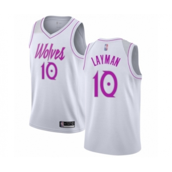 >Women's Minnesota Timberwolves #10 Jake Layman White Swingman Jersey - Earned Edition