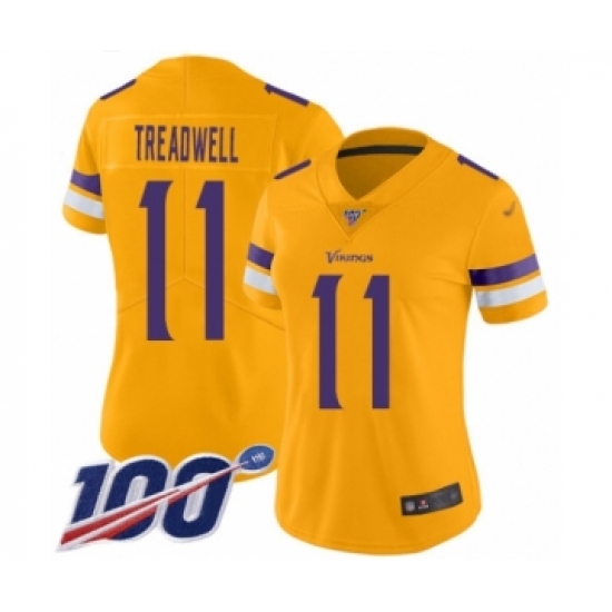 >Women's Minnesota Vikings #11 Laquon Treadwell Limited Gold Inverted Legend 100th Season Football Jersey