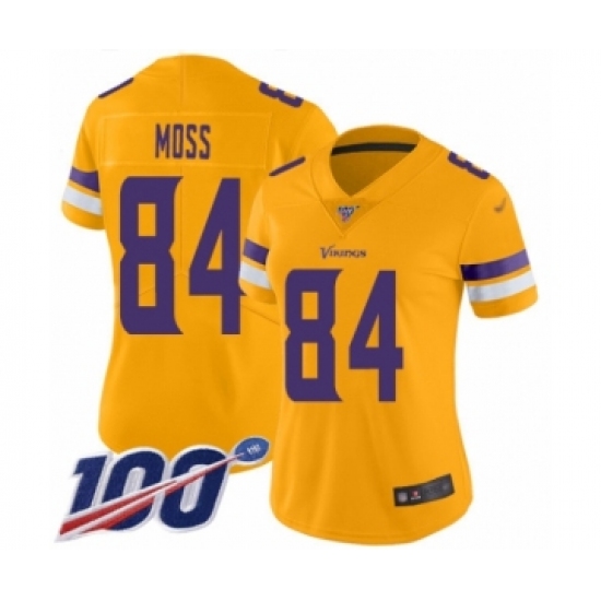 Women's Minnesota Vikings #84 Randy Moss Limited Gold Inverted Legend 100th Season Football Jersey