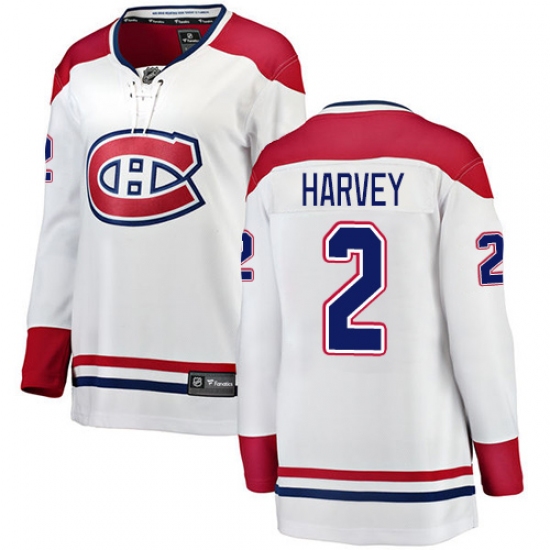 Home>NHL>Montreal Canadiens>Doug Harvey>Women's Montreal Canadiens #2 Doug Harvey Authentic White Away Fanatics Branded Breakaway NHL Jersey