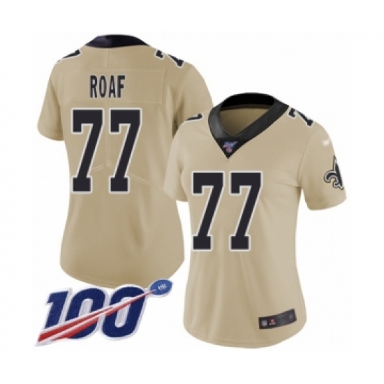 Women's New Orleans Saints #77 Willie Roaf Limited Gold Inverted Legend 100th Season Football Jersey