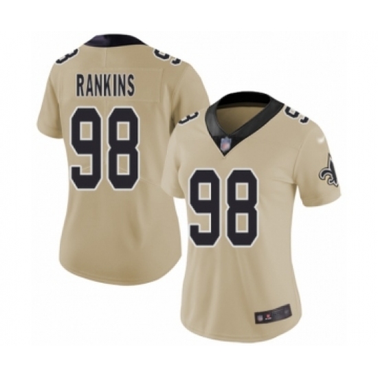 >Women's New Orleans Saints #98 Sheldon Rankins Limited Gold Inverted Legend Football Jersey