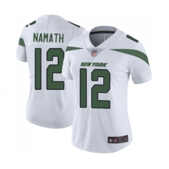 >Women's New York Jets #12 Joe Namath White Vapor Untouchable Limited Player Football Jersey