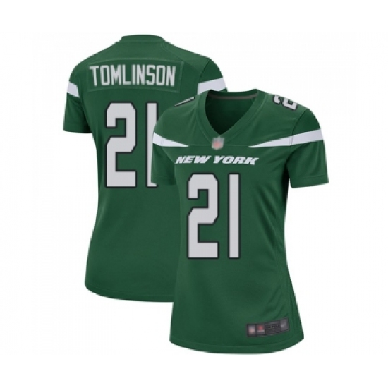 >Women's New York Jets #21 LaDainian Tomlinson Game Green Team Color Football Jersey