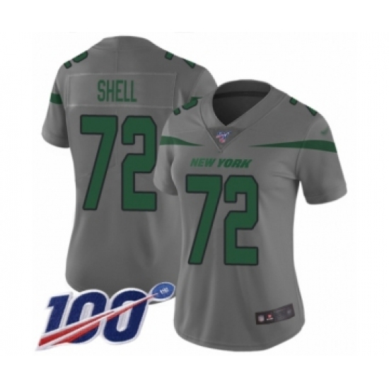 >Women's New York Jets #72 Brandon Shell Limited Gray Inverted Legend 100th Season Football Jersey
