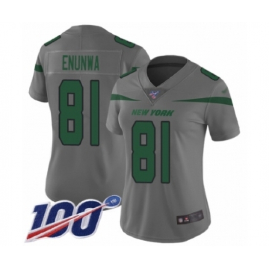 >Women's New York Jets #81 Quincy Enunwa Limited Gray Inverted Legend 100th Season Football Jersey