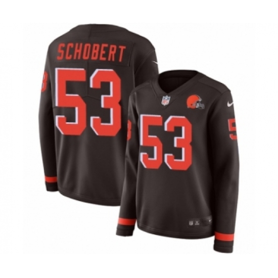 Women's Nike Cleveland Browns #53 Joe Schobert Limited Brown Therma Long Sleeve NFL Jersey