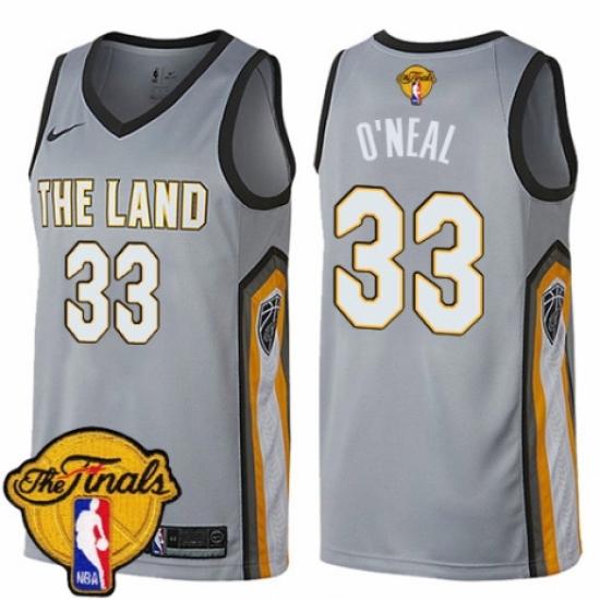 >Women's Nike Cleveland Cavaliers #33 Shaquille O'Neal Swingman Gray 2018 NBA Finals Bound NBA Jersey - City Edition