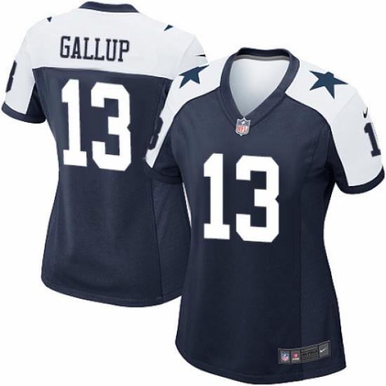 >Women's Nike Dallas Cowboys #13 Michael Gallup Game Navy Blue Throwback Alternate NFL Jersey