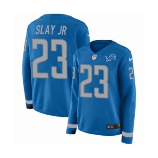 >Women's Nike Detroit Lions #23 Darius Slay Limited Blue Therma Long Sleeve NFL Jersey