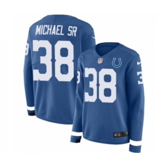 >Women's Nike Indianapolis Colts #38 Christine Michael Sr Limited Blue Therma Long Sleeve NFL Jersey