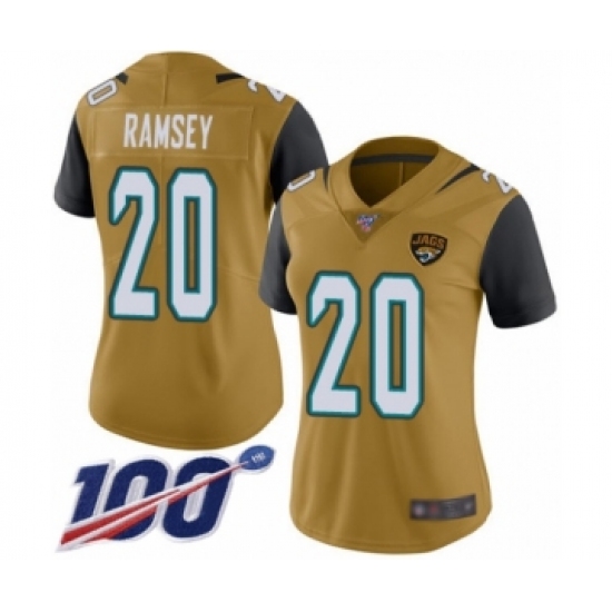 Women's Nike Jacksonville Jaguars #20 Jalen Ramsey Limited Gold Rush Vapor Untouchable 100th Season NFL Jersey