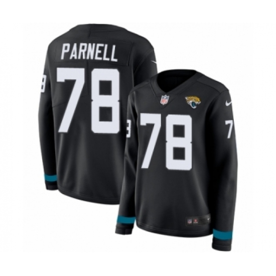 >Women's Nike Jacksonville Jaguars #78 Jermey Parnell Limited Black Therma Long Sleeve NFL Jersey