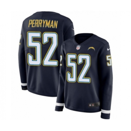 >Women's Nike Los Angeles Chargers #52 Denzel Perryman Limited Navy Blue Therma Long Sleeve NFL Jersey