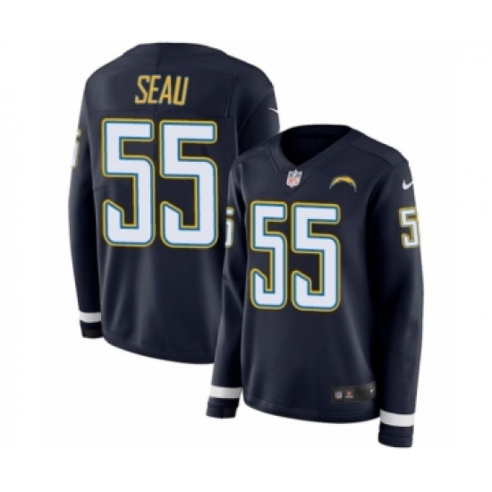 >Women's Nike Los Angeles Chargers #55 Junior Seau Limited Navy Blue Therma Long Sleeve NFL Jersey
