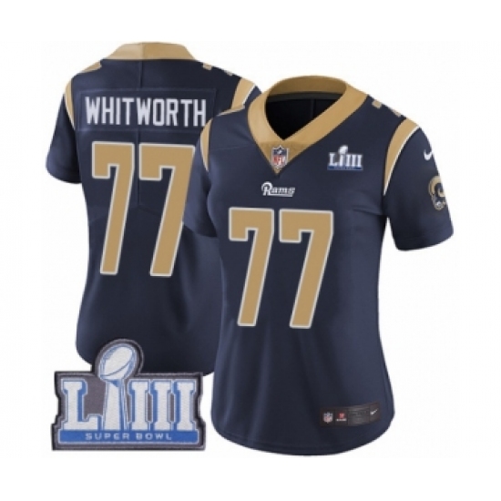 Women's Nike Los Angeles Rams #77 Andrew Whitworth Navy Blue Team Color Vapor Untouchable Limited Player Super Bowl LIII