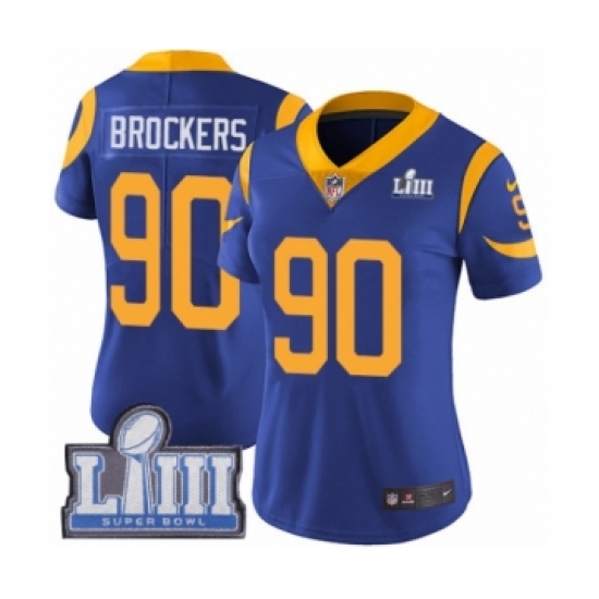 >Women's Nike Los Angeles Rams #90 Michael Brockers Royal Blue Alternate Vapor Untouchable Limited Player Super Bowl LIII Bound NFL Jersey