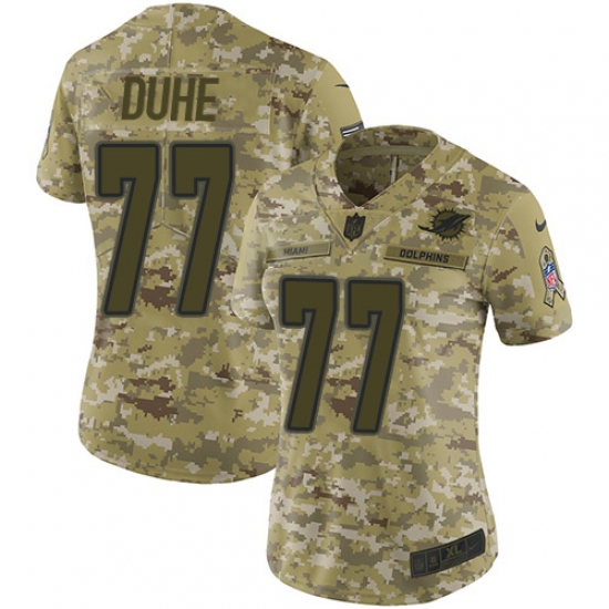 >Women's Nike Miami Dolphins #77 Adam Joseph Duhe Limited Camo 2018 Salute to Service NFL Jersey