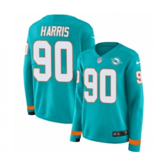 Women's Nike Miami Dolphins #90 Charles Harris Limited Aqua Therma Long Sleeve NFL Jersey