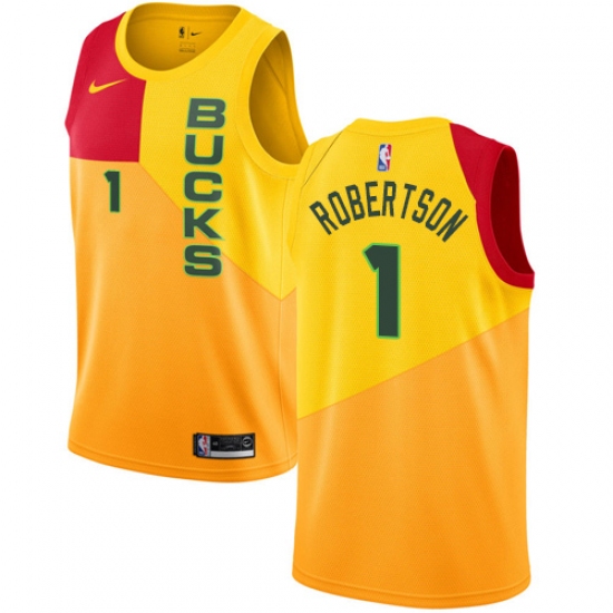 Men's Nike Milwaukee Bucks #1 Oscar Robertson Swingman Yellow NBA Jersey - City Edition