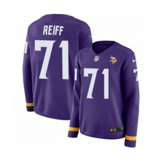 >Women's Nike Minnesota Vikings #71 Riley Reiff Limited Purple Therma Long Sleeve NFL Jersey